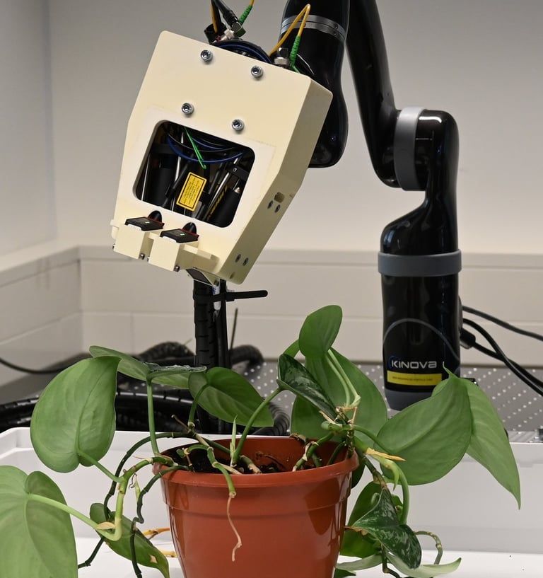 Ultralight Kinova robot carrying payloads until 3 kg and equipped with an optical measurement head hosting THz optics